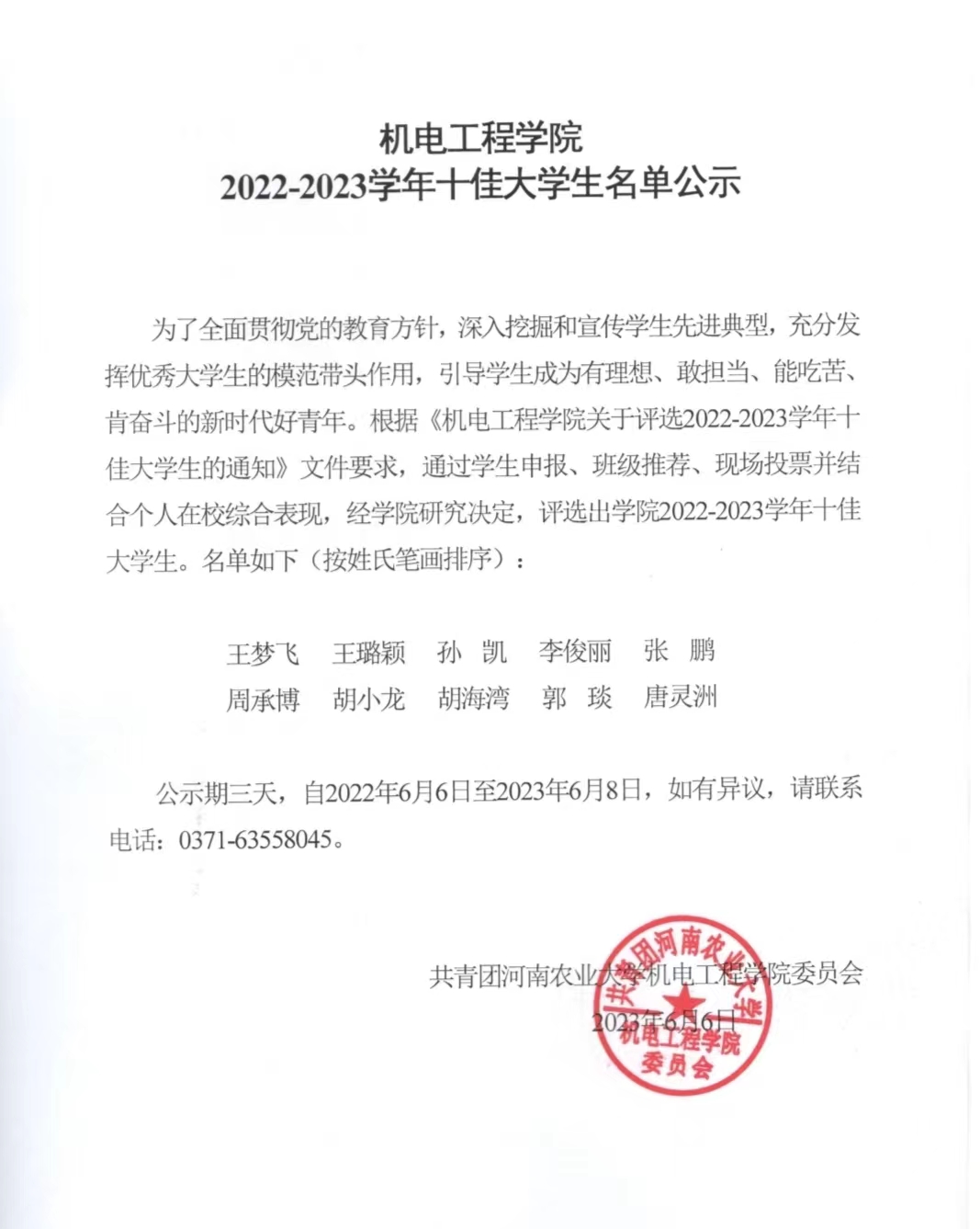 成人影院 2022-2023学年十佳大学生名单公示