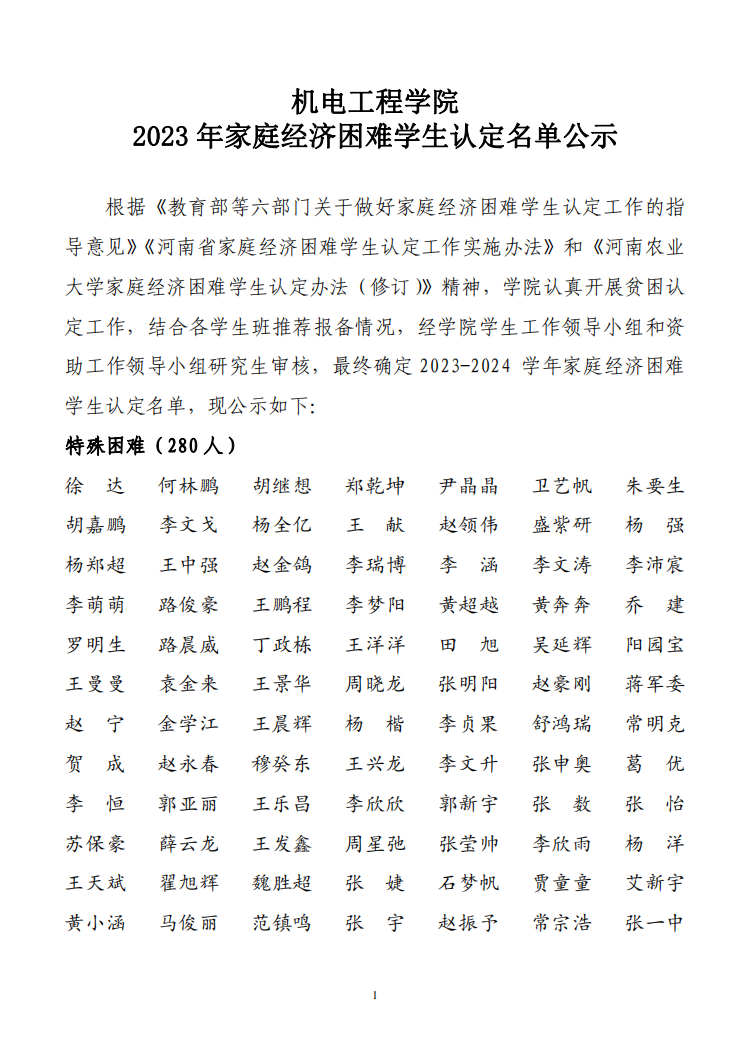 根据《教育部等六部门关于做好家庭经济困难学生认定工作的指导意见》《河南省家庭经济困难学生认定工作实施办法》和《成人影院 家庭经济困难学生认定办法(修订)》精神,学院认真开展贫困认定工作,结合各学生班推荐报备情况,经学院学生工作领导小组和资助工作领导小组研究生审核,最终确定2023-2024 学年家庭经济困难学生认定名单,现公示如下: