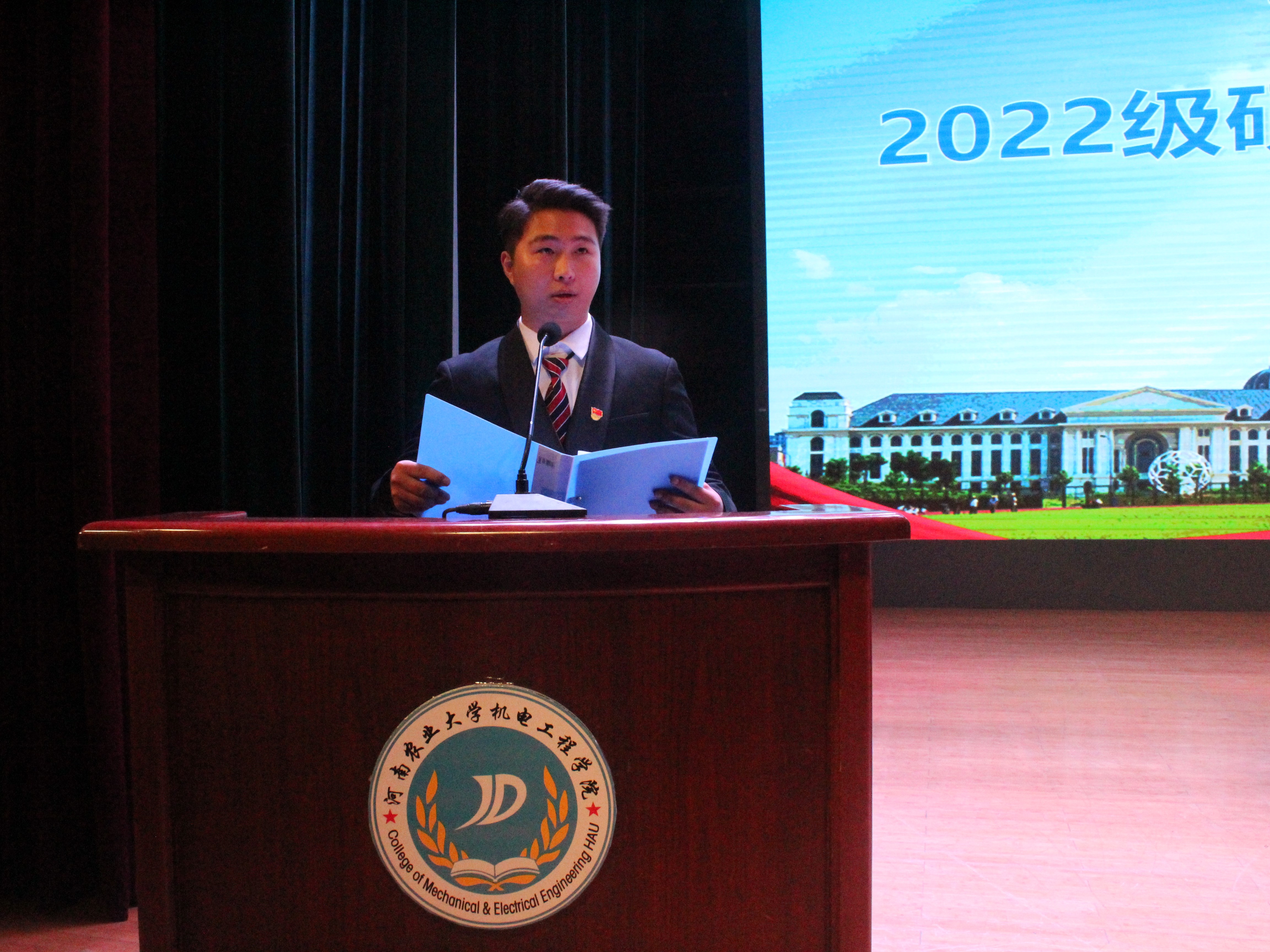 优秀校友代表高林朝、优秀教师代表王恒依次上台发言,他们分别结合个人的生活经历、学习经验及求职经历,向新生们分享大学的经验,提醒大家注重专业学习,培养实践能力,提高科技创新能力;勉励同学们在大学期间确立和践行个人的理想目标,坚定理想信念,厚植家国情怀,不辜负宝贵的青春年华,在人生新的阶段谱写精彩的乐章。