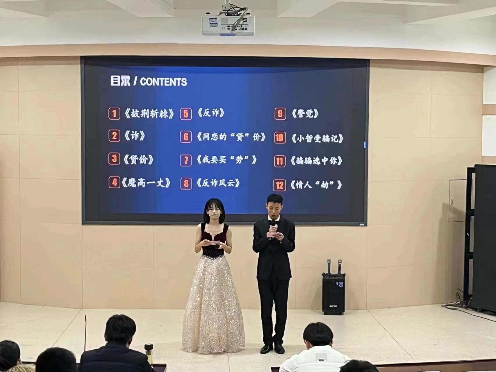 经现场评委打分,《网恋的“贷”价》、《情人“劫”》、《反诈》荣获一等奖,《“贷”价》、《诈》、《骗骗选中你》、《披荆斩棘》、《我要买“劳”》荣获二等奖,《警觉》、《魔高一丈》、《大学生智斗诈骗犯》、《小哲受骗记》荣获三等奖。