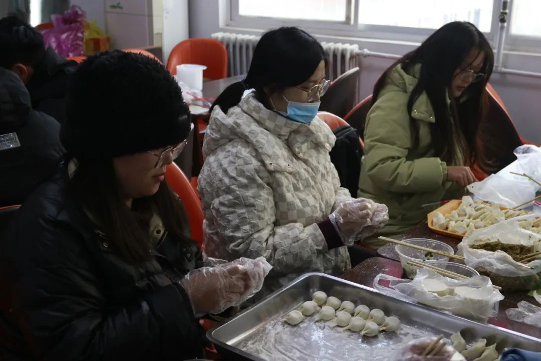 活动现场,学生们积极参与,老师们也加入到包饺子的队伍中。大家分工协作、热情高涨、各显身手,饺子的形状各异,花样繁多,在包饺子的过程中,老师与学生们亲切交流,现场欢声笑语、其乐融融。