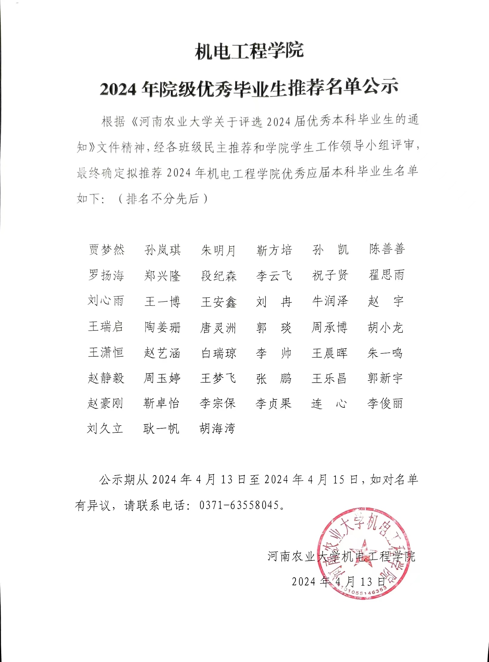 成人影院 2024年院级优秀毕业生推荐名单公示