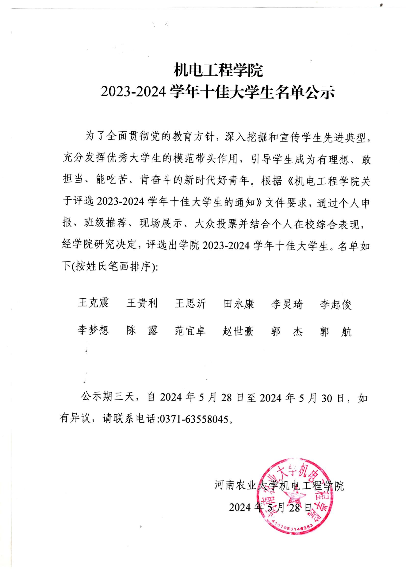 为了全面贯彻党的教育方针,深入挖掘和宣传学生先进典型,充分发挥优秀大学生的模范带头作用,引导学生成为有理想‘’敢担当、能吃苦、肯奋斗的新时代好青年。根据《成人影院 关 于评选2023-2024学年十佳大学生的通知》文件要求,通过个人申报、班级推荐、现场展示、大众投票并结合个人在校综合表现,经学院研究决定,评选出学院2023-2024学年十佳大学生。名单如下(按姓氏笔画排序):