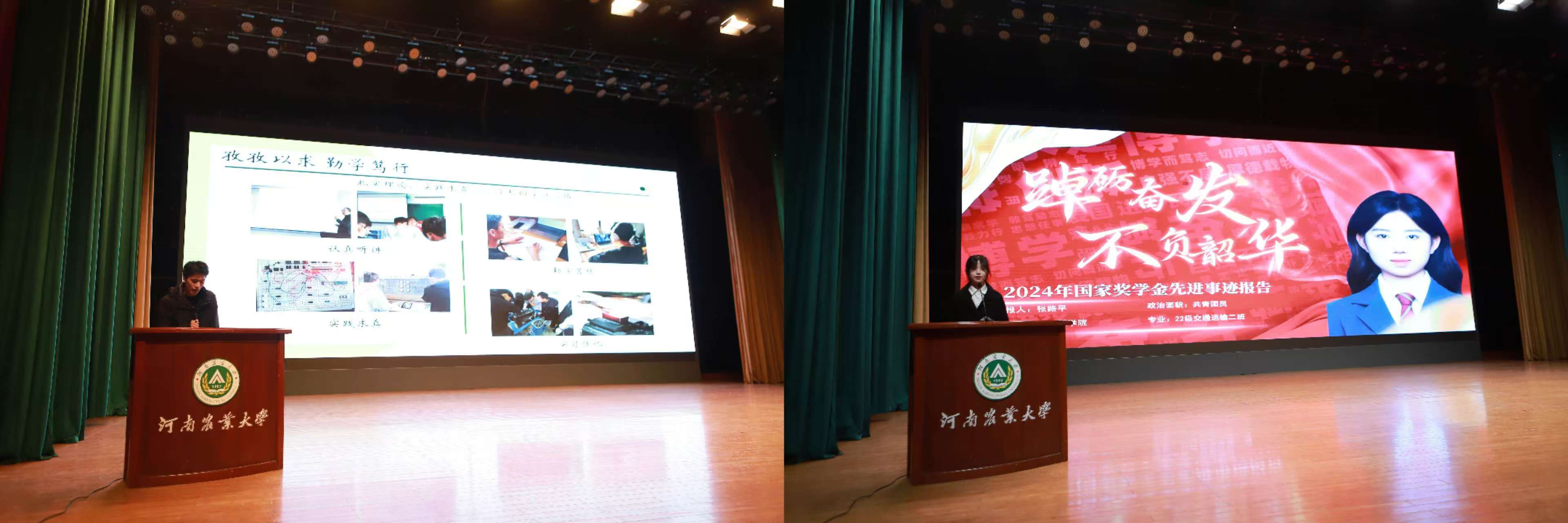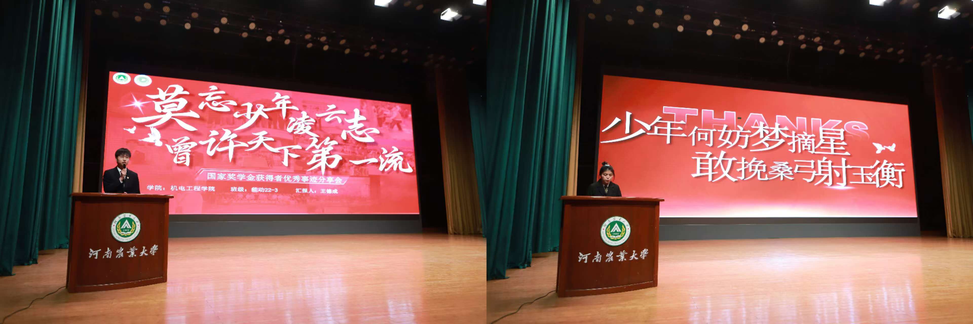 会上,十位国家奖学金获得者依次上台,通过PPT展示的方式,分享了自己的学习心得和成长历程。他们围绕思想提升、学习经验、工作实践、生活感悟等多个方面,详细讲述了如何在学习上取得优异成绩,如何在实践中培养社会责任感,以及如何在创新中取得丰硕成果。他们的分享极大鼓舞了在座的每位学生。