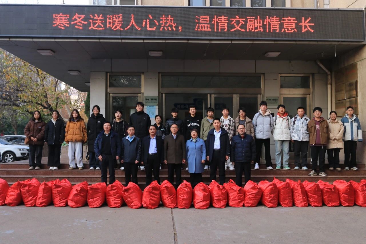 领导给学生代表送出棉被,亲手将这份温暖送到学生们的手中。这不仅是物质的馈赠,更是对学子们深切关爱的生动诠释,激励着他们在求学之路上无畏前行。