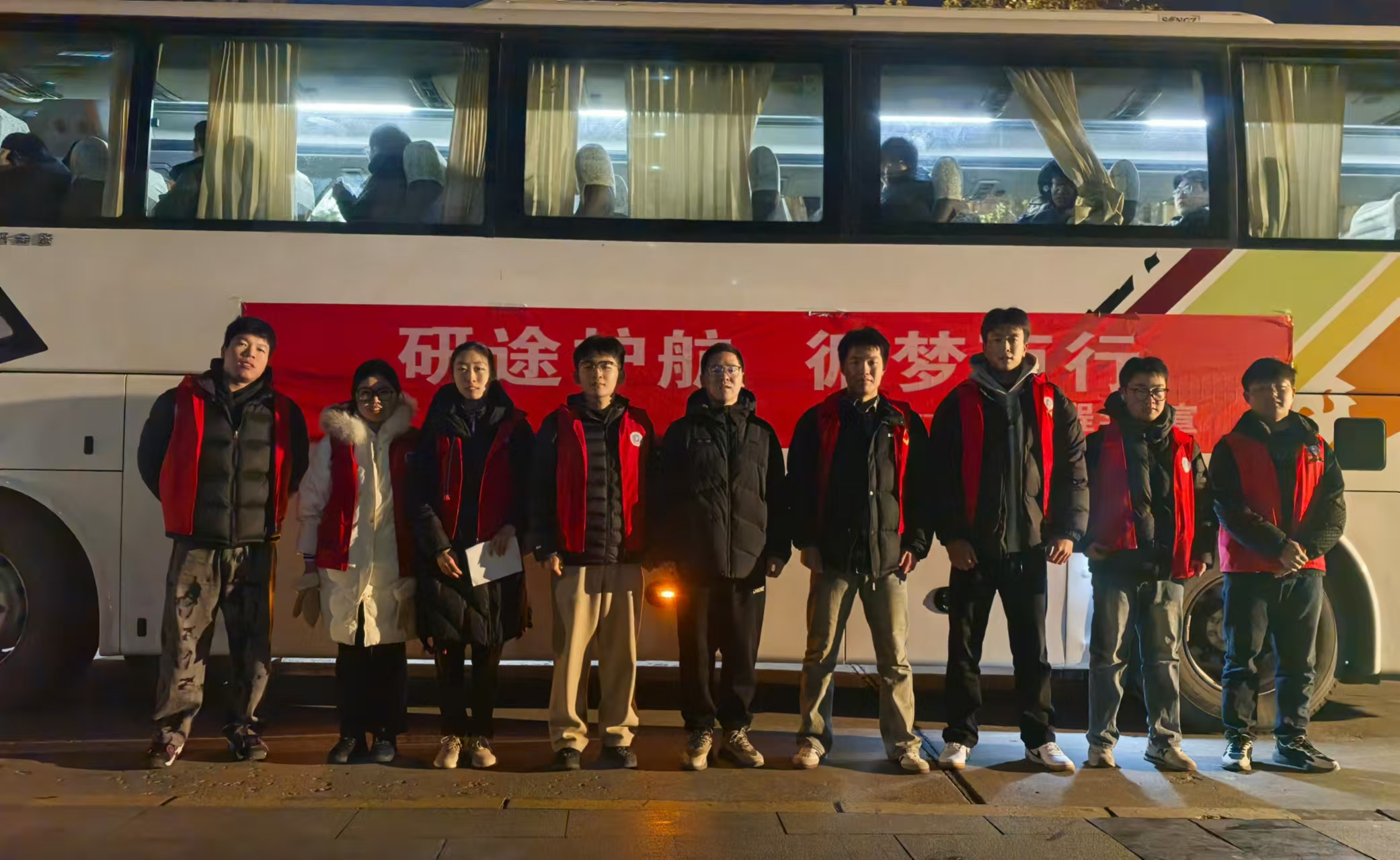考研志似火,寒天赴战歌。凌霜逐梦去,热血写巍峨。送考车内,考研学子争分夺秒,或养精蓄锐,或温故知新,皆为梦想作终极冲刺,无畏前行。爱心送考车缓缓驶离校门之际,老师与志愿者们满怀热忱,齐声高呼“加油”“金榜题名”“一战成硕”,真挚祝福如暖阳,助力考研学子逐梦路。