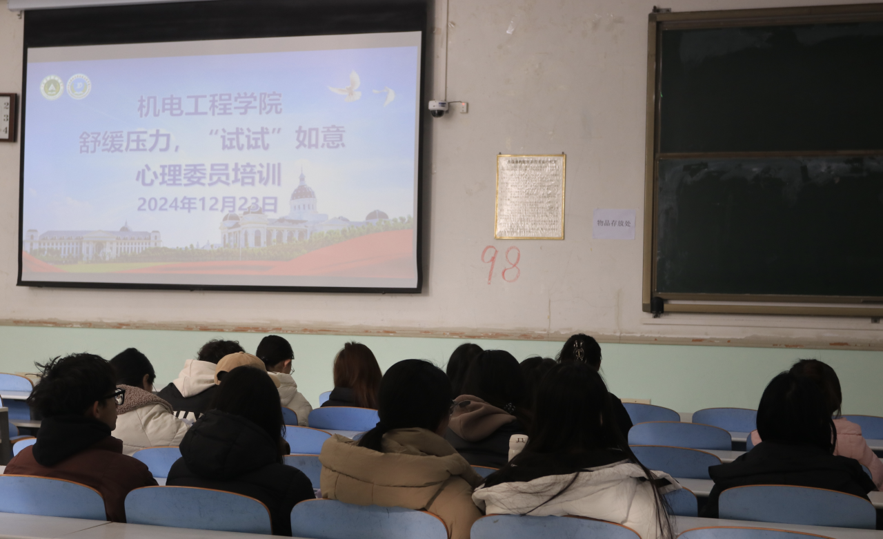 在文化路校区工程楼101教室举办“舒缓压力,‘试试’如意”心理委员培训。此次培训由年级辅导员孙改革主讲,学院各年级心理委员参加。