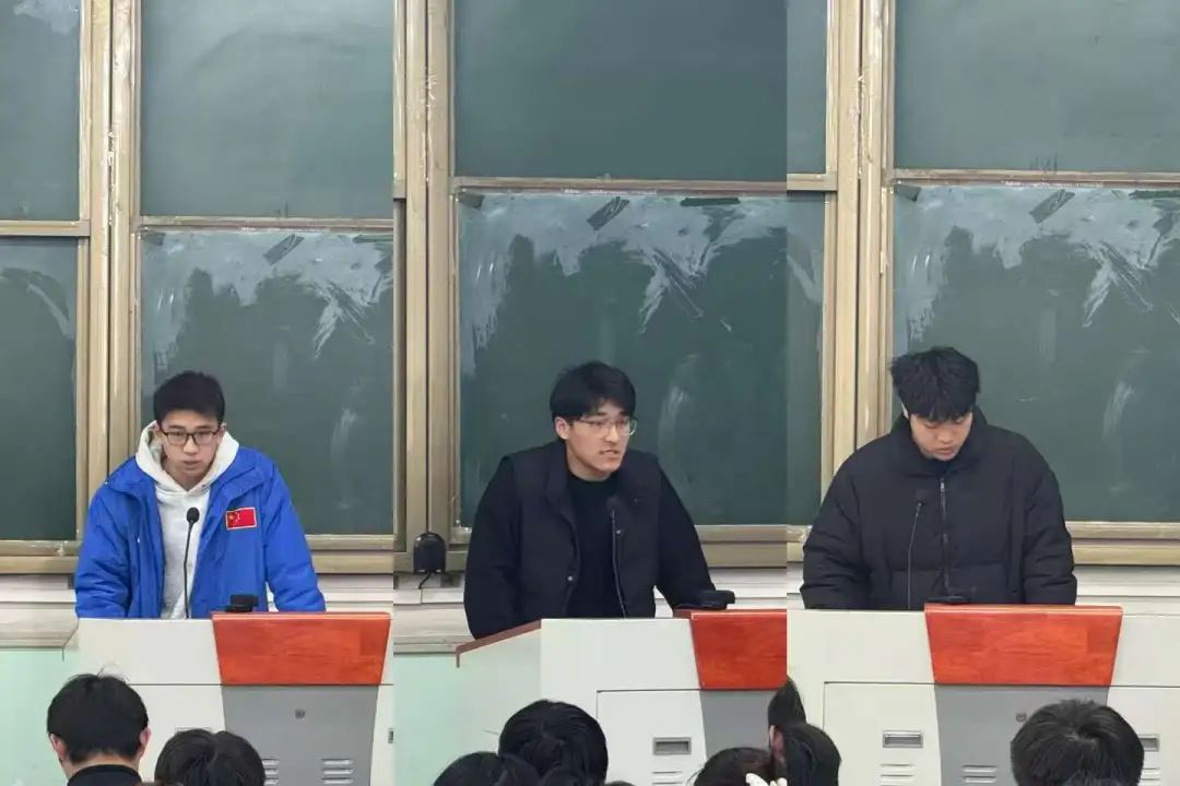 随后,校运会优秀运动员段其宏、李永琪、周超依次上台发言。他们讲述了自己在赛场上的拼搏经历,分享自己在训练过程中总结的经验及注意事项,鼓励新队员们认真训练、刻苦努力,强调要将机电精神传承下去,希望新队员们能够创造新的辉煌,为学院赢得更多荣誉。