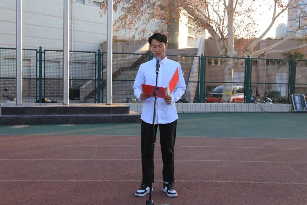 在文化路校区操场举行“激扬青春强体魄,拼搏奋进向未来”升国旗仪式。学院领导老师、青马班、各党支部成员以及23、24级全体同学齐聚操场,共同参与了这一庄重的仪式,仪式由院党委副书记宋晶主持。