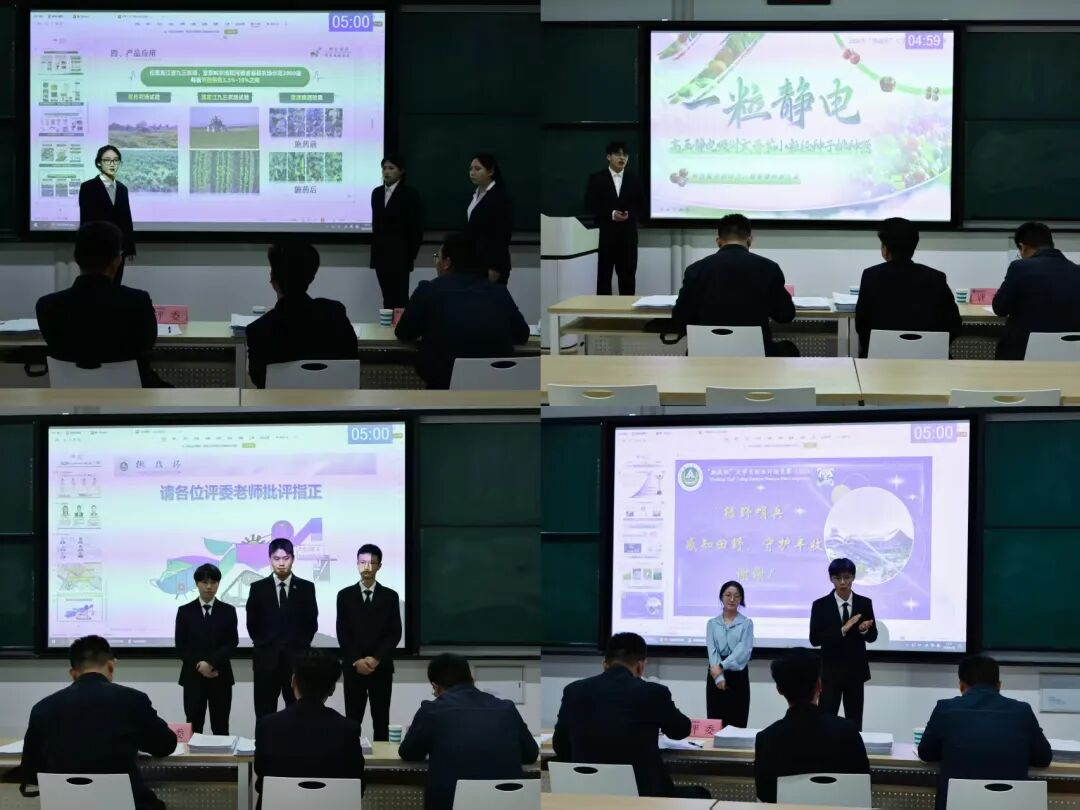 汇报展示阶段,参赛队伍逐一登台路演。各项目负责人从项目背景、市场调研、技术研发、商业布局、运营规划、社会价值与未来发展等多个维度切入,结合精美详实的演示文稿,进行逻辑完整、内容充实的全方位讲解。参赛项目紧扣先进制造、新一代信息技术重点赛道,聚焦乡村发展建设、科创成果落地、普惠民生建设等热门领域。全体参赛团队深耕专业所学,立足社会发展刚需,以创新破解现实难题,推动科创成果落地应用,生动彰显了青年学子勇于探索、实干创新的奋斗精神与时代担当。