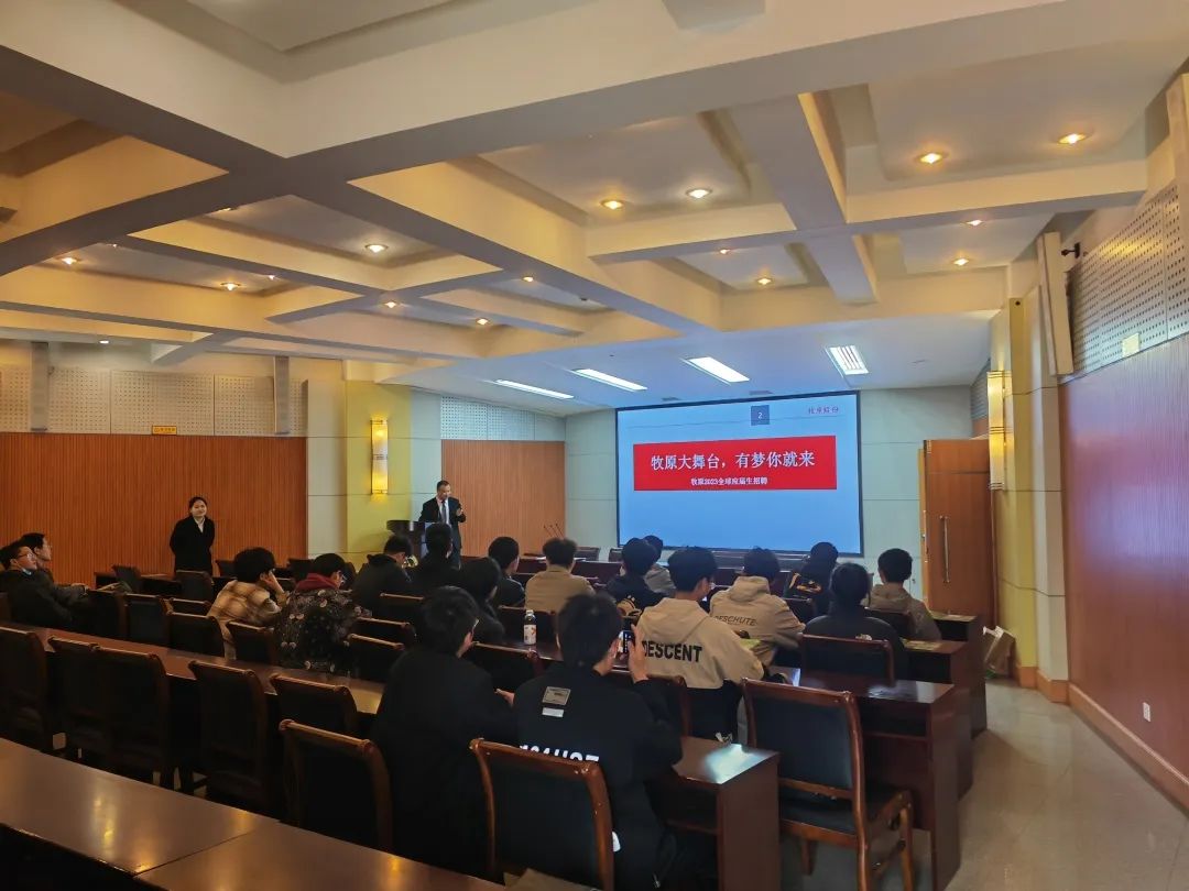于文化路校区100人报告厅举办牧原集团校园宣讲会。该公司招聘相关负责人及成人影院